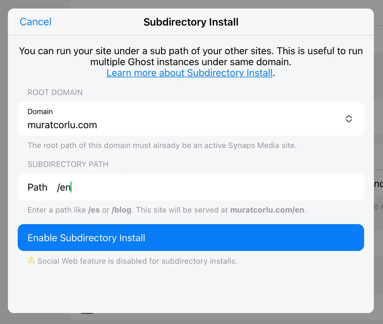 Subdirectory installs arrive Synaps Media. One Domain, Multiple Ghost Sites — No Setup Required
